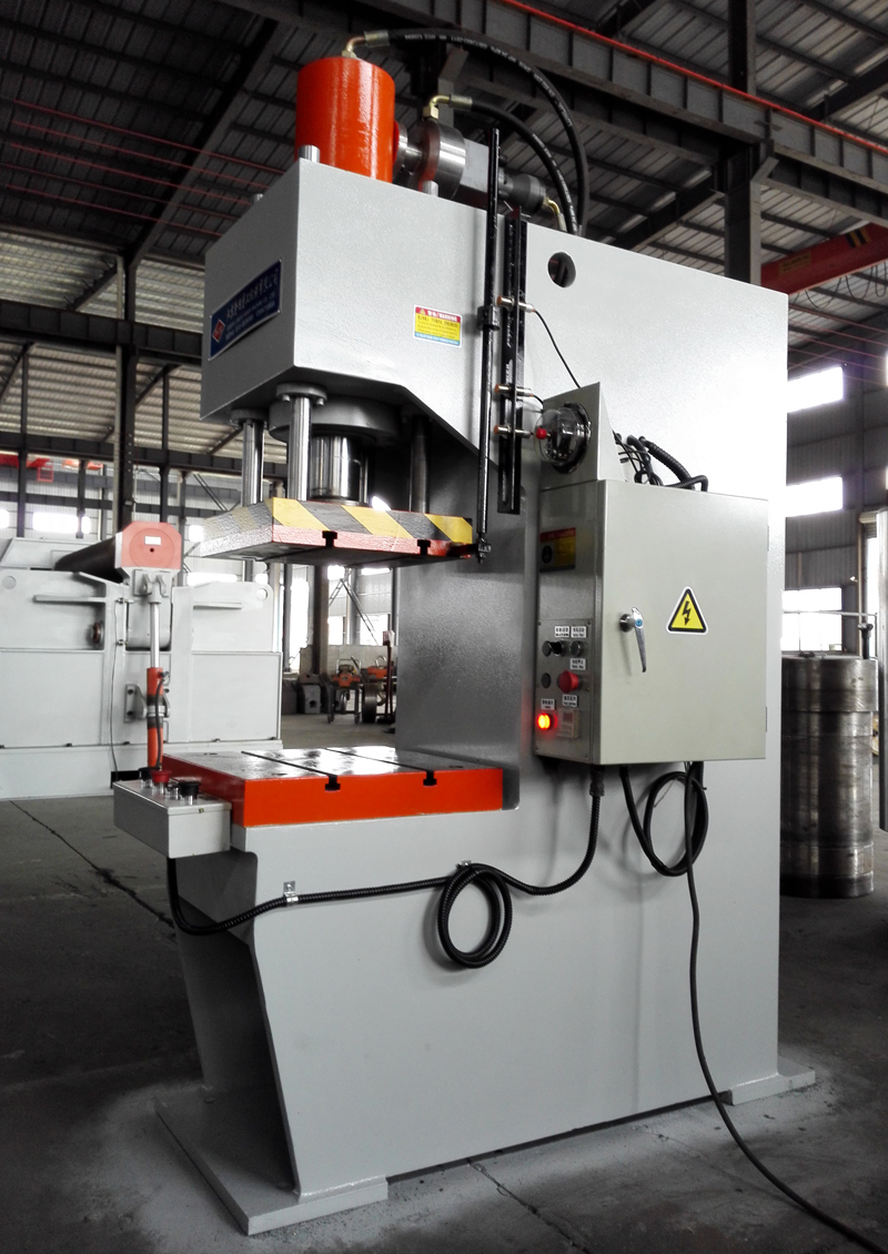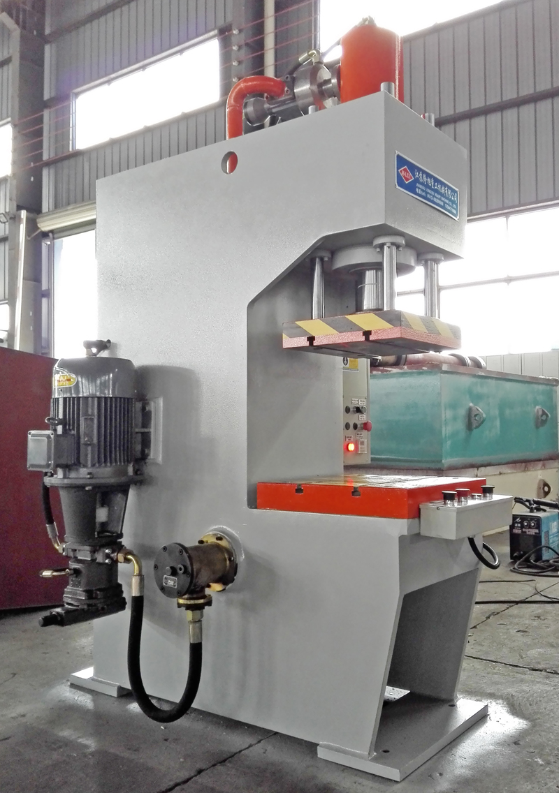 性能特点:本系列单柱式液压机通过计算机优化直立式C型结构设计,刚性好,采用钢板焊接,焊接后通过回火时效处理,确保机身永不变形。液压系统安装于机身内,外型美观,结构紧凑,操作方便。本系列液压机设有独立的液压与电器控制系统,采用按钮集中控制,可实现定程和定压两种成型工艺,机器行程、压力可在规定范围内调节;本压机压头采用四柱导向,具有抗偏载能力。